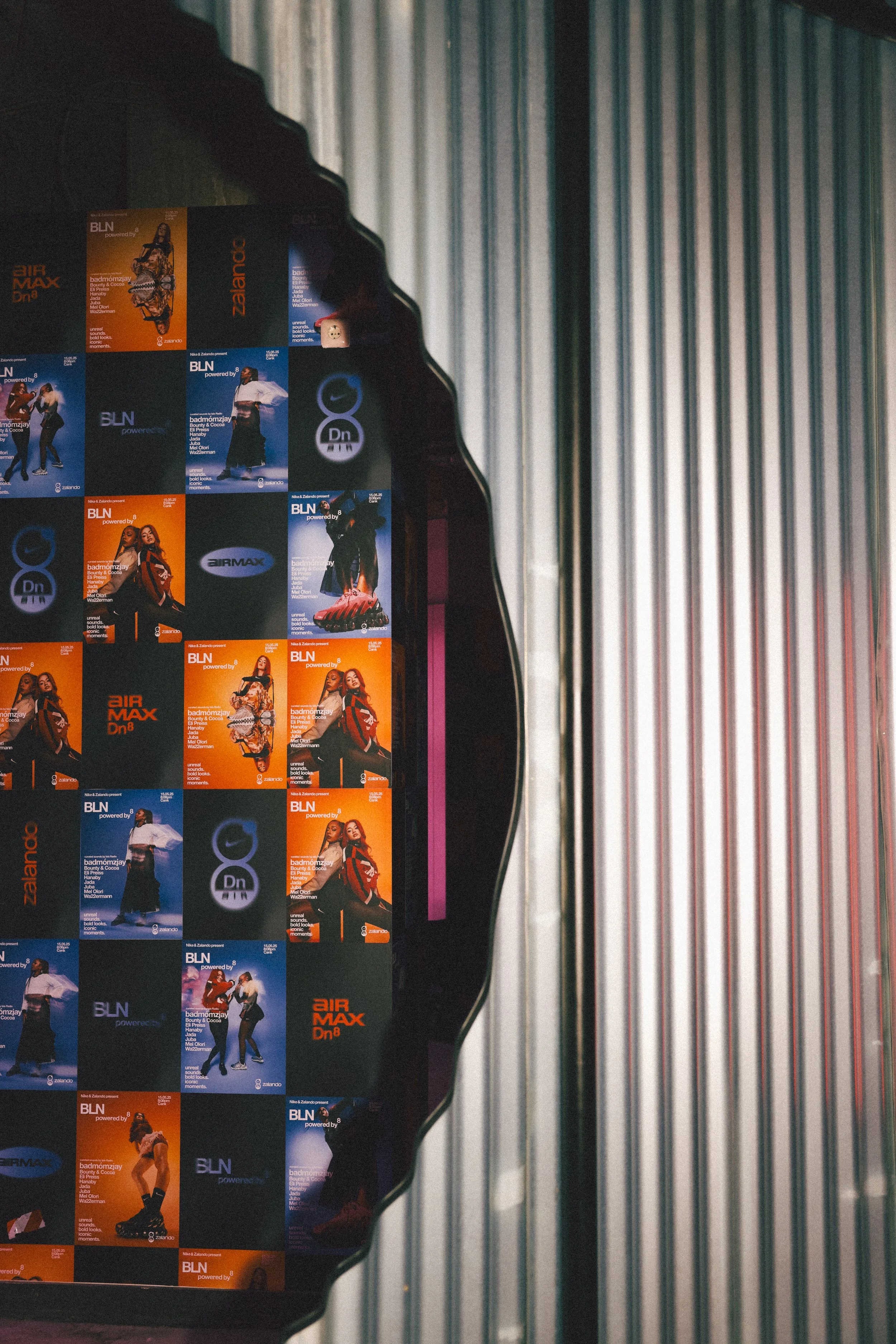 Guests moved through high-energy zones themed by DN8 colourways—from a red-lit tunnel entrance to a pink customisation lab and a reflective bar wrapped in DN8 red. Beauty moments included bleached brows, Y2K tooth gems, and an ‘8-Minute Glow-Up’ bathroom takeover styled with Zalando essentials.